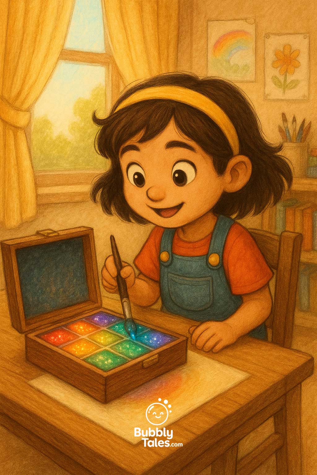 Cuando Maya encuentra un juego de pinturas mágico, aprende que compartir su alegría con una nueva amiga hace que todo sea más divertido y colorido.
