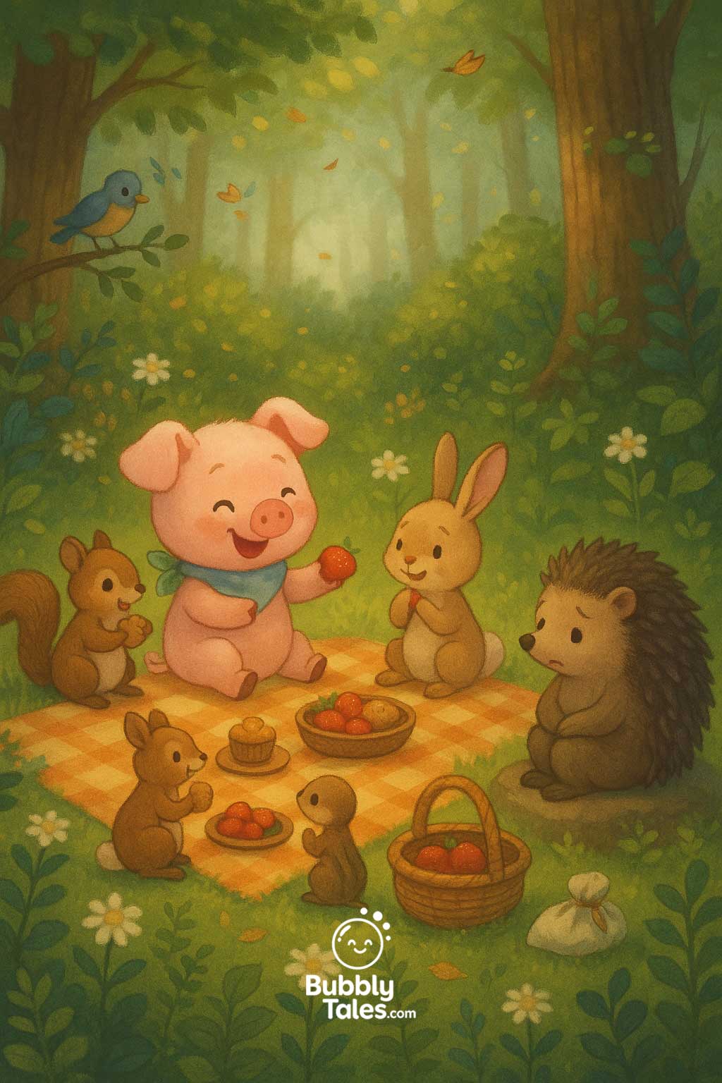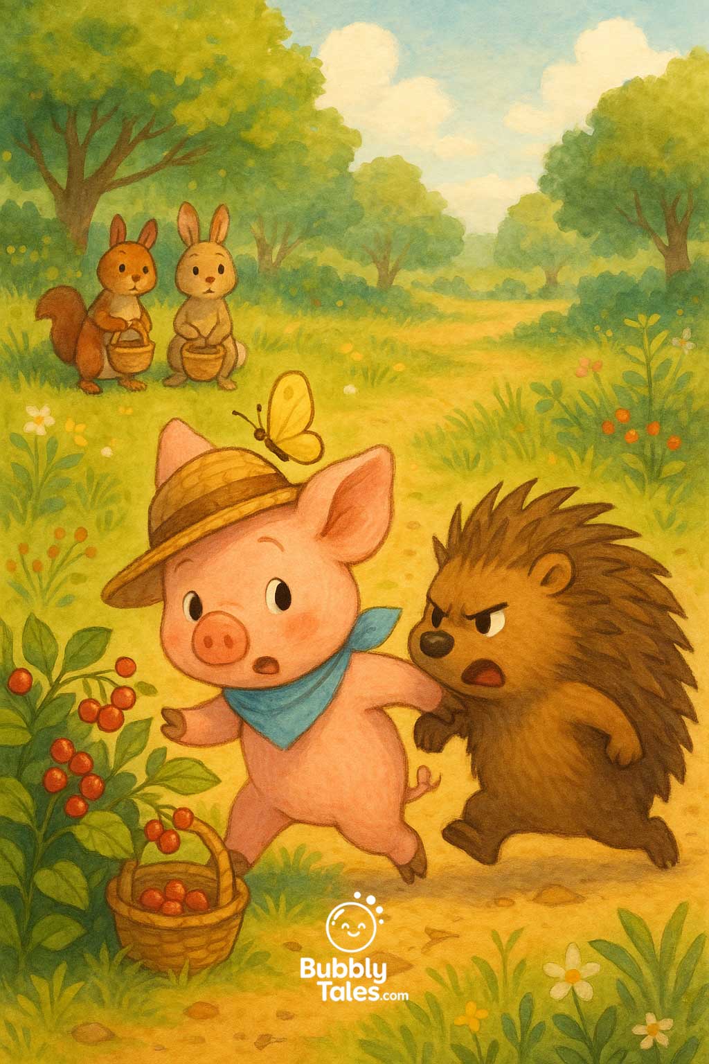 As Penny reached for a juicy berry, a prickly voice barked, “Move it!” Holly the Hedgehog shoved past, grumbling. The other animals frowned, stepping back. Penny blinked, then smiled gently. “You can have it. I can pick more,” she said. Holly snorted and stomped away.